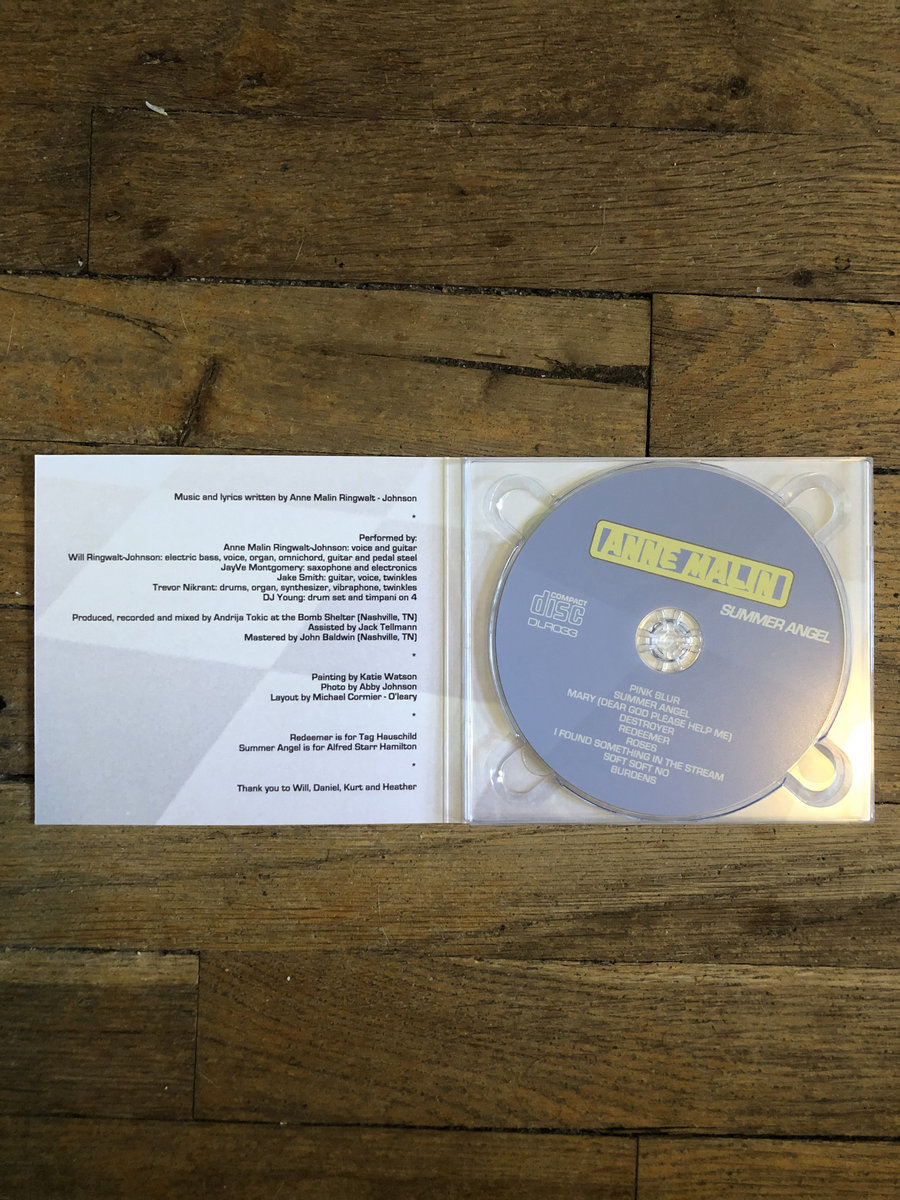 Echoing Henry Mancini and Songs: Ohia in equal measure, “Summer Angel” is Anne Malin’s most ambitious project yet. Produced by Andrija Tokic (Josephine Foster, Alabama Shakes) at the Bomb Shelter in Nashville, TN, Anne Malin and her collaborators worked with ease and humor, benefiting from Tokic’s vibrant conceptions of the songs. Tokic embraced an inappropriateness in production, collaging sounds—from saxophone, pedal steel, and orchestral percussion, to name a few—with agile nonchalance.